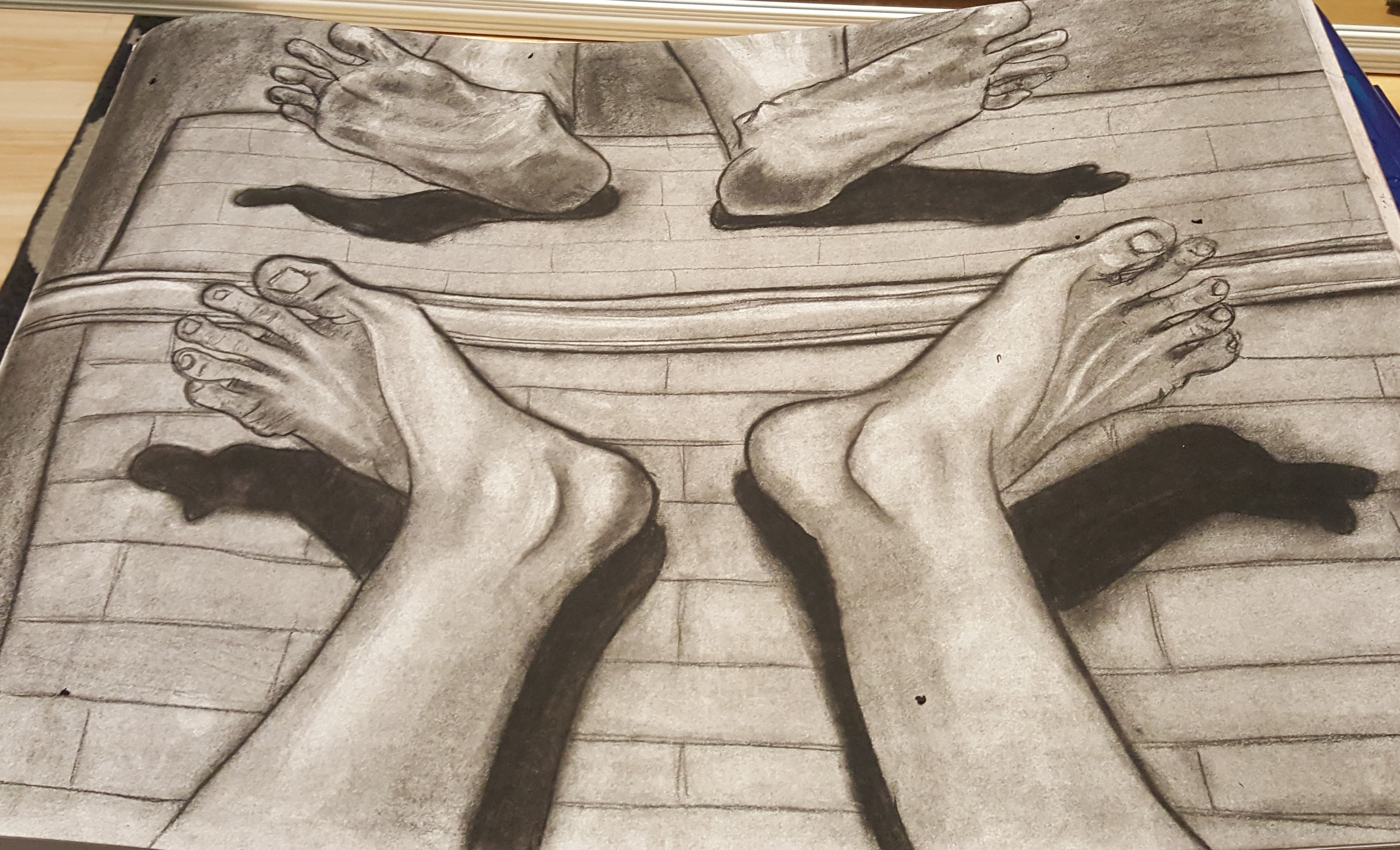 Drawings Self Portrait- Eyes (vine charcoal and conte crayon) Self Portrait- Feet with Mirror (Vine Charcoal and conte crayon) Cartoon Book – Ink Niagara Falls (vine charcoal) Eye (vine charcoal and conte crayon) Weekend in San Antonio (pencil)